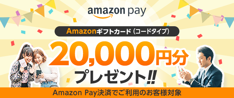 キャンペーン期間中にAmazon Payでご決済をいただいたお客様の中から、抽選で50名様にAmazonギフトカード2万円分(Eメールタイプ)をプレゼントいたします。